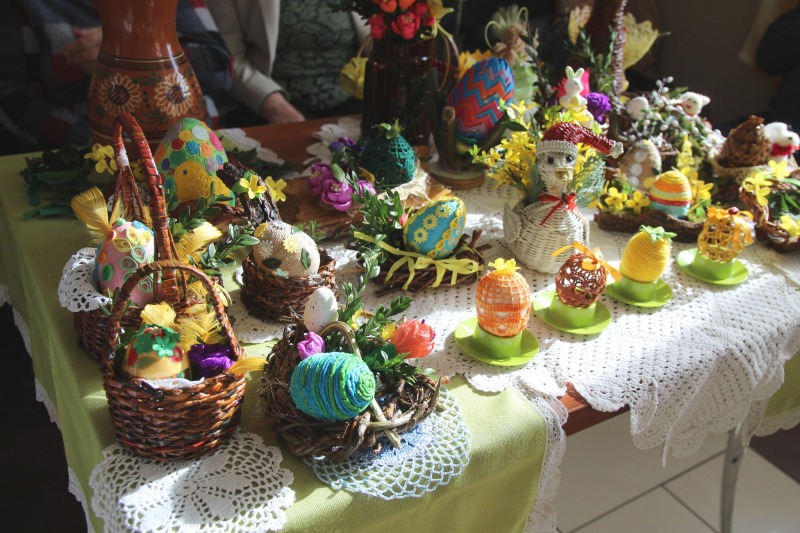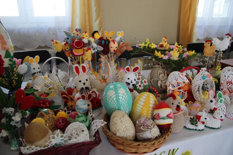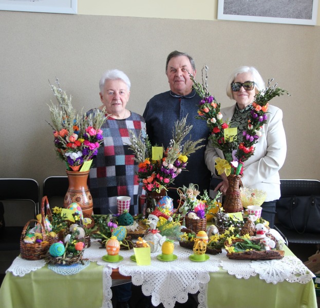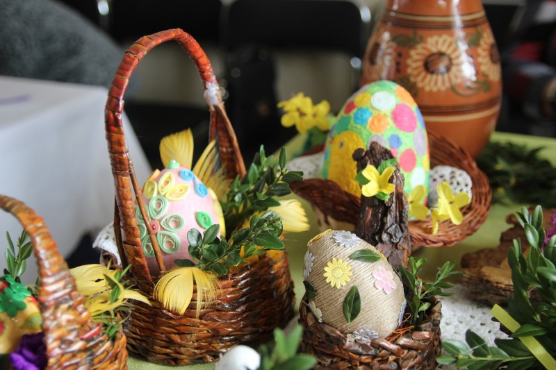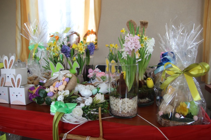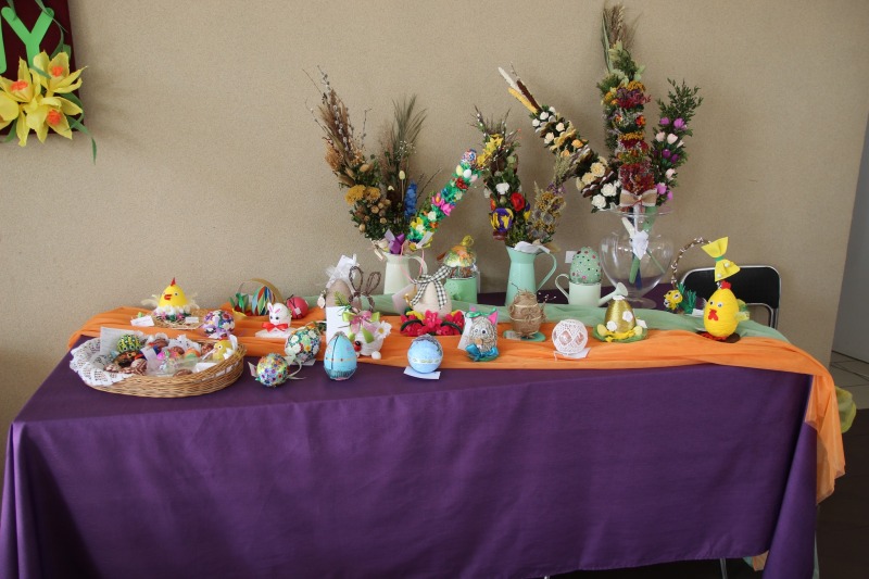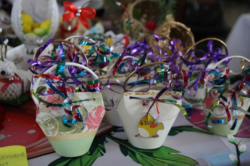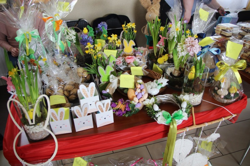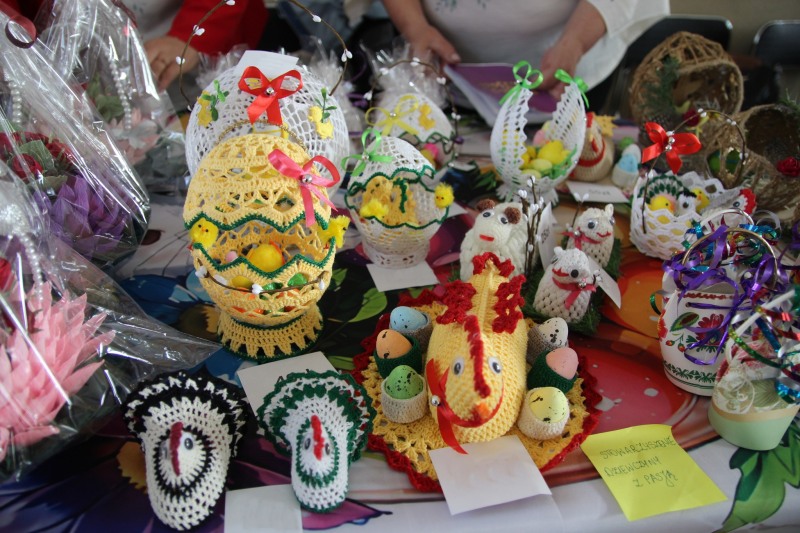 Na przygotowanych stoiskach można było podziwiać i zakupić przepiękne, ręcznie wykonane stroiki, palmy wielkanocne, pisanki zdobione różnorodnymi technikami oraz tradycyjne domowe wypieki świąteczne.