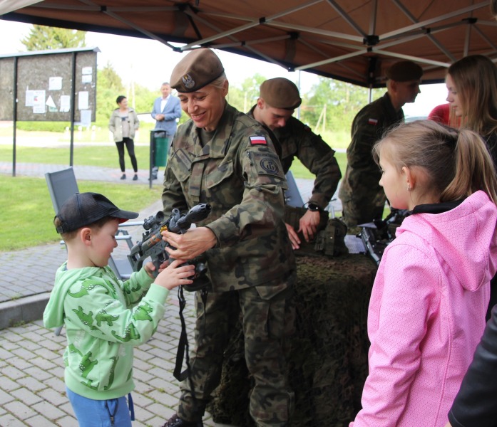 z naszej Gminy – dzieci miały okazję obejrzeć pojazdy i sprzęt oraz porozmawiać z funkcjonariuszami oraz Strażakami. Na miejscu obecny był także 19. Nadbużańska Brygada Obrony Terytorialnej prezentując wyposażenie, jakim dysponują na co dzień. Ich obecność cieszyła się dużym zainteresowaniem – zarówno dzieci, jak i dorośli chętnie podchodzili, by zobaczyć sprzęt z bliska i porozmawiać z żołnierzami.