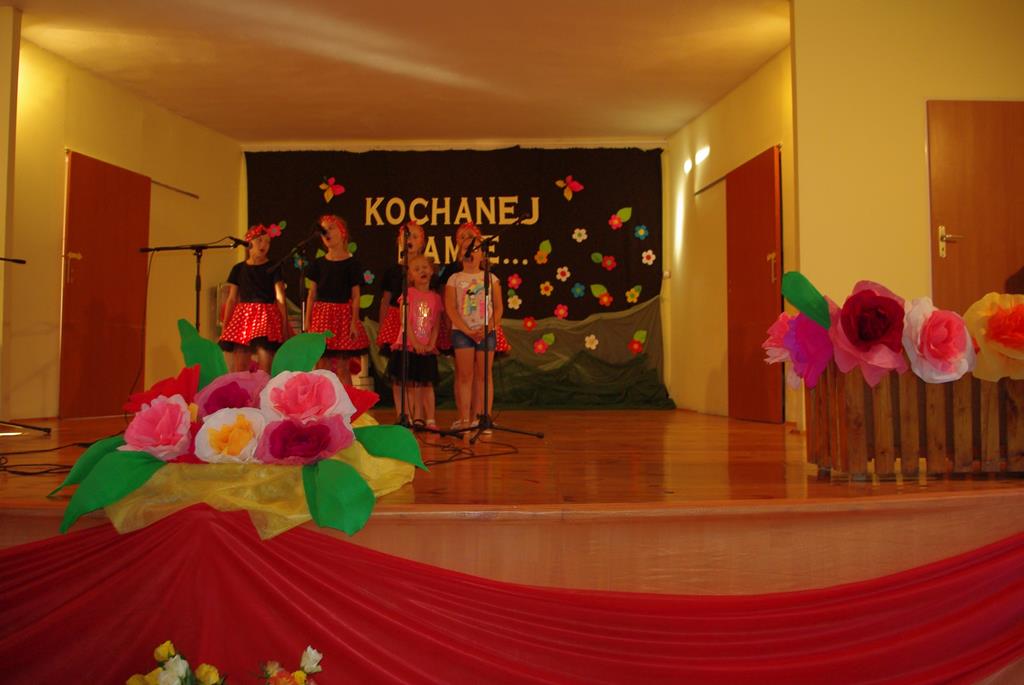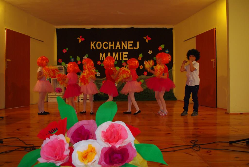 Po wspólnie z dziećmi odśpiewanym „Sto lat”, Wójt Gminy Pan Stanisław Czarnota wręczył wszystkim mamom symboliczną różę. W dalszej części akademii wystąpiły dla mam zespoły działające przy GOK w Trzeszczanach tj. zespół dziecięcy „Promyczki”, Zespół Ludowy „Echo” z Trzeszczan, Zespół Ludowy „Zorzanie” z Zadębiec, Zespół Ludowy „Ostrowiacy” z Kapelą, oraz gościnnie zespół „Niepokorni”. Przybyłe na uroczystość mamy mogły obejrzeć również popisy taneczne swych milusińskich, którzy tańczą w zespołach „Twister” oraz „Młodszej Grupie Tanecznej”. Wszyscy zgromadzeni biorący udział w akademii mogli spróbować pysznych ciast z przygotowanego na słodko stołu a które upiekły Panie z Zespołu Ludowego „Echo” z Trzeszczan, za co serdecznie dziękujemy. Serdecznie dziękujemy również dzieciom, które wzięły udział w części artystycznej, członkom zespołów tanecznych i śpiewaczych, oraz wszystkim, którzy włączyli się w przygotowanie tej wspaniałej uroczystości.
