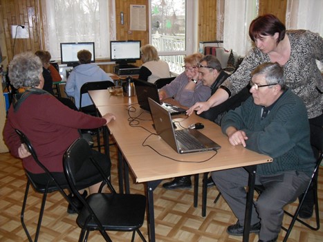 Prowadzą go bibliotekarki Pani Zofia Kowalska z Gminnej Biblioteki Publicznej w Trzeszczanach oraz Pani Zofia Bobowska z Filii w Nieledwi. Seniorzy uczą się podstaw obsługi komputera, piszą teksty, poznają tajniki i zasoby internetu, przeglądają strony www.