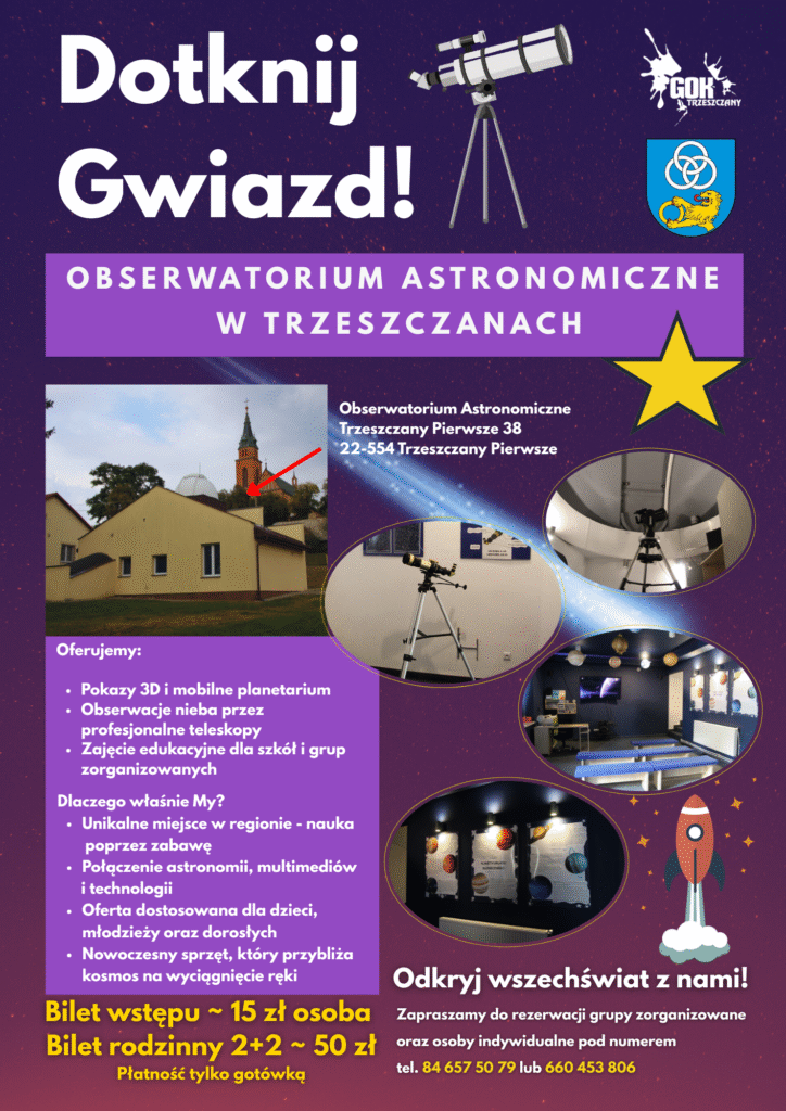 Obserwatorium Astronomiczne w Trzeszczanach zaprasza dzieci, młodzież i dorosłych na niezapomnianą przygodę z astronomią.