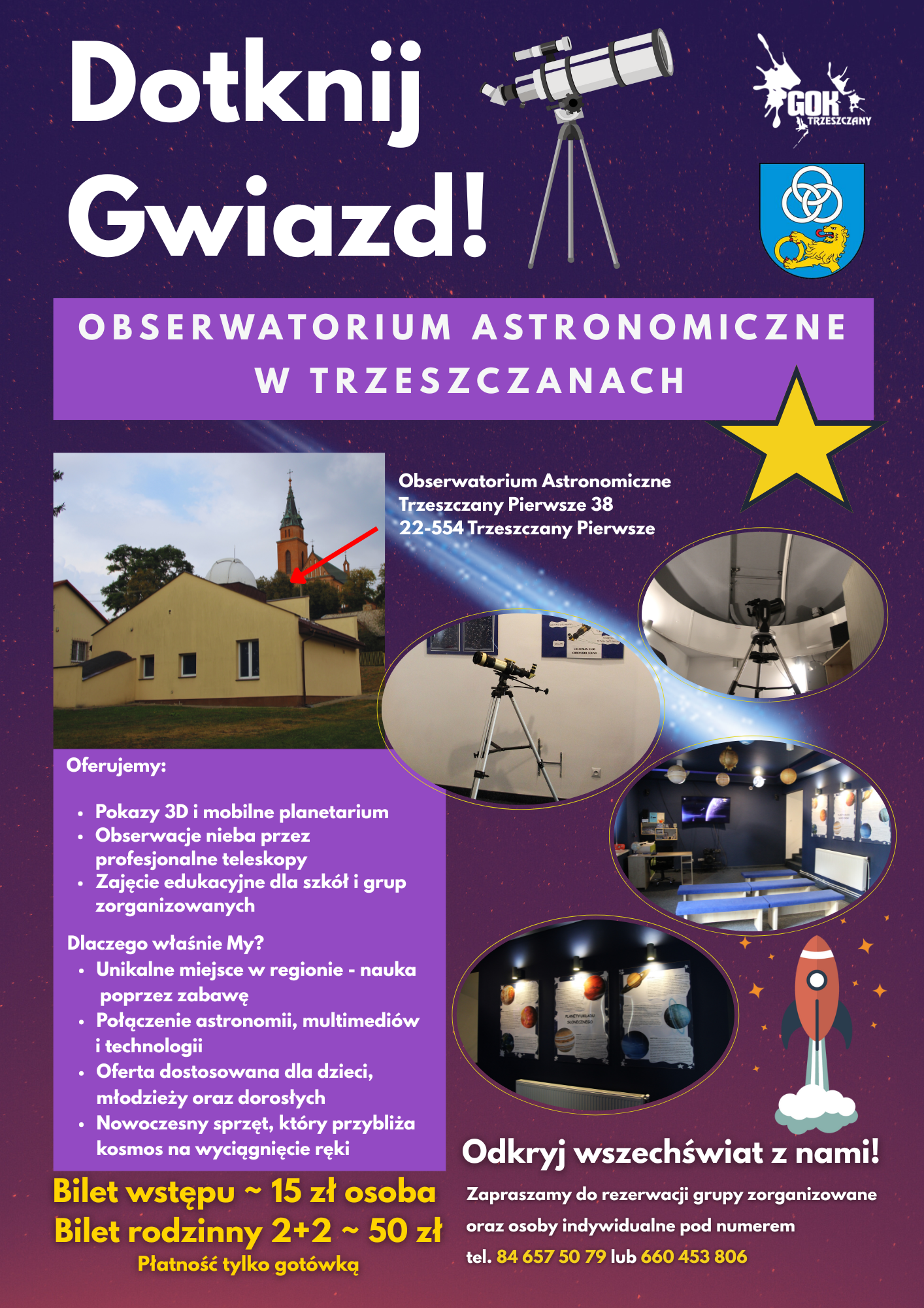 Obserwatorium Astronomiczne w Trzeszczanach zaprasza dzieci, młodzież i dorosłych na niezapomnianą przygodę z astronomią.