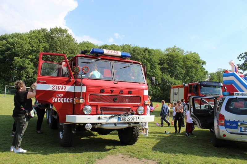 Z okazji Dnia Dziecka na stadionie w Nieledwi realizowaliśmy projekt pod nazwą „Odpowiedzialny kierowca”. Tematem przewodnim wszystkich konkursów było bezpieczeństwo na drodze. Temat realizowany był poprzez rozpowszechnianie ulotek oraz wiedzę teoretyczną i praktyczną uczestników imprezy, polegającą m.in. na rozmowie z policjantem starszym aspirantem Jackiem Wrzyszczem , w której dzieci mogły wykazać się znajomością podstawowych przepisów drogowych, znaków drogowych, kultury na drodze, odpowiedzialnego zachowania, które zapewni bezpieczną podróż wszystkim użytkownikom drogi jak również zagadnień związanych z bezpiecznym zachowaniem się na drodze. Praktyczne zastosowanie przepisów z wiedzy o ruchu drogowym, dzieci zaprezentowały pokonując przygotowany specjalnie do tego celu oznaczony tor rowerowy. W konkursie plastycznym dzieci bazując na swojej wyobraźni namalowały różne niebezpieczne wydarzenia jakie mogą się wydarzyć na drodze. W ramach dbałości o zdrowie dzieci brały udział w biegach przygotowanych przez organizatora w 3 kategoriach wiekowych. Dzieci biorące udział w konkursach otrzymały nagrody rzeczowe. Oprócz wymienionych konkursów dla wszystkich dzieci czekały inne niespodzianki, m.in. zjeżdżalnie, basen z piłeczkami, pokaz wozu bojowego OSP w Zadębcach, PSP w Hrubieszowie, Policji, przejażdżka bryczką Pana Stanisława Buciora oraz samochodem „Fart” Pana Marka Koszałki, bańki mydlane, zabawy i konkursy  z nagrodami, lody, wata cukrowa, muffinki przygotowane przez Panie z KGW w Nieledwi, oraz kiełbaska z grilla, które obsługiwały Panie z KGW w Zadębcach.  W imprezie udział wzięło 180 dzieci.  W imieniu Gminnego Ośrodka Kultury oraz biorących udział w imprezie dzieci, serdecznie dziękujmy wszystkim osobom zaangażowanym w organizację imprezy za ich szczególną wrażliwość, wielkie serce, zrozumienie i otwartość wobec potrzeb dzieci. Szczególnie dziękujemy: