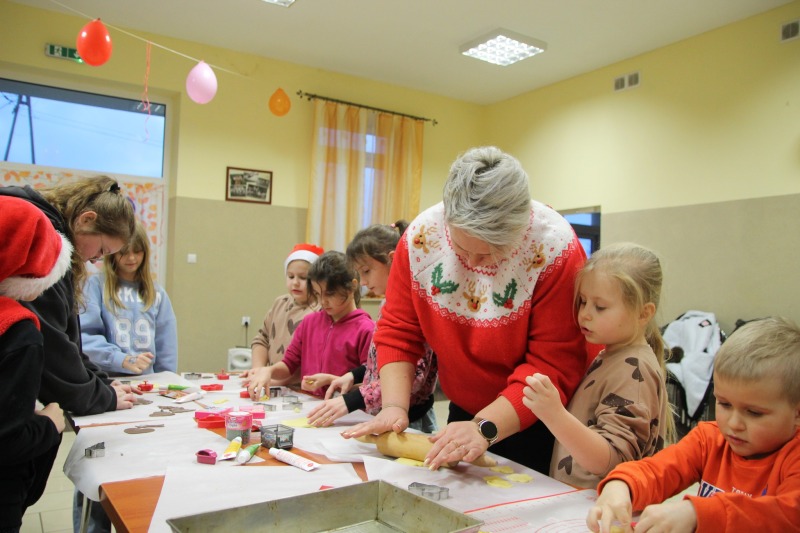 Gminny Ośrodek Kultury w Trzeszczanach zorganizował z Paniami z KGW Trzeszczany Pierwsze dla wszystkich dzieci z gminy Trzeszczany warsztaty wypiekania i ozdabiania ciasteczek.