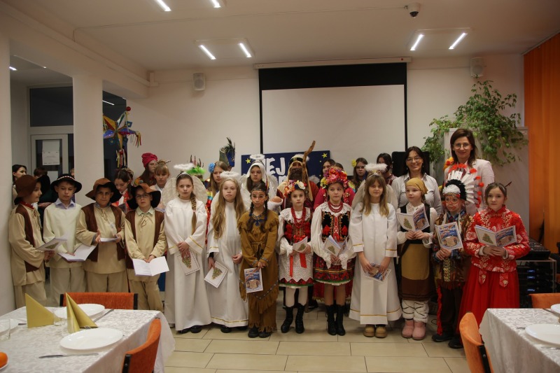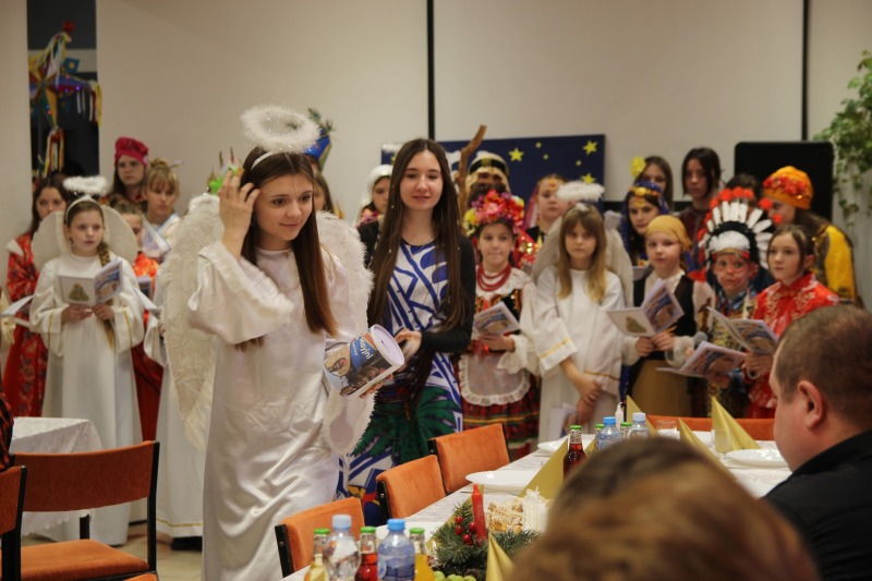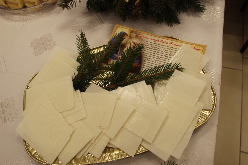 W miłej atmosferze przy dźwiękach kolęd wykonanych przez uczniów Szkoły Podstawowej w Trzeszczanach .
